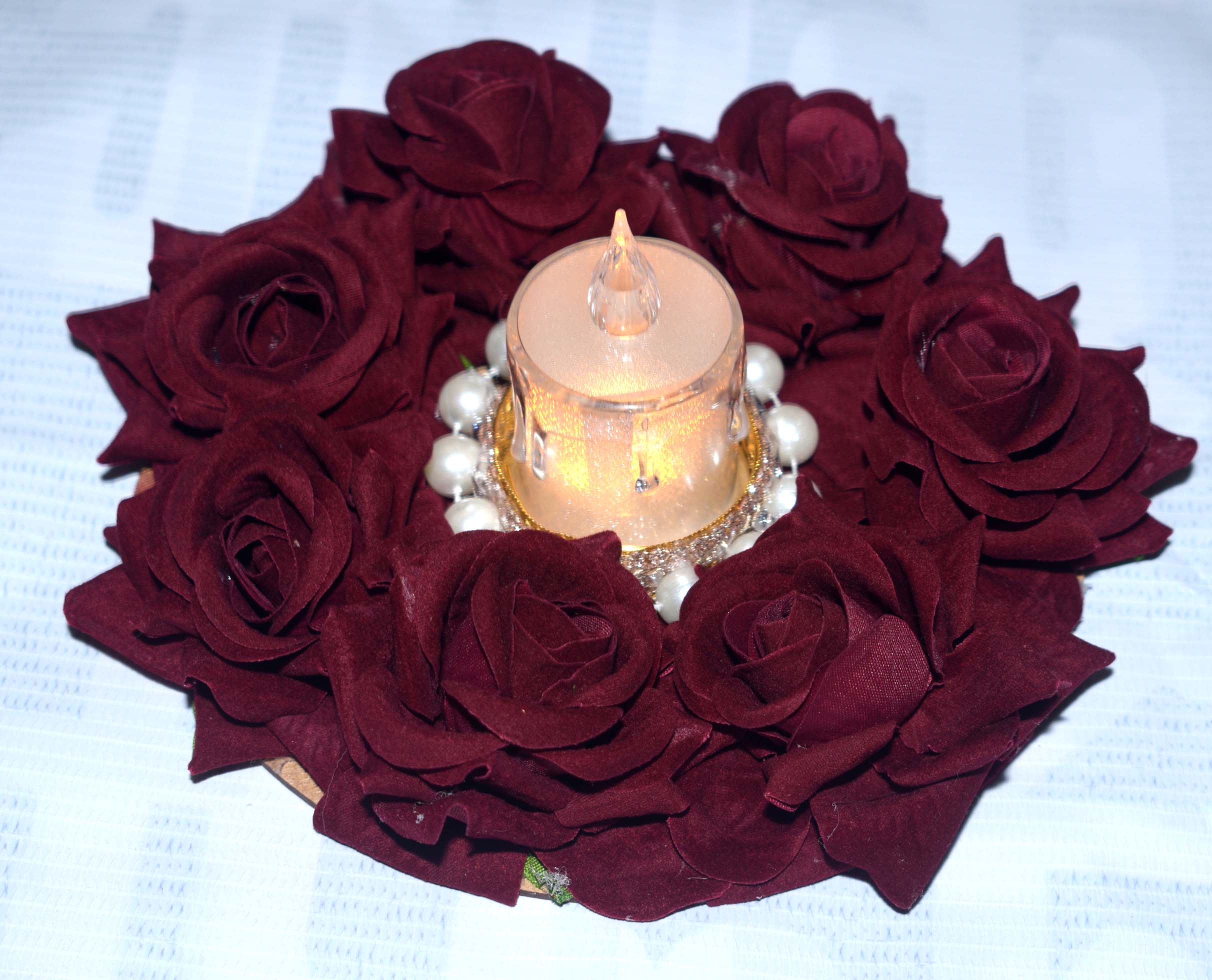 Product Name: Handmade Artificial Rose Flower Rangoli with Tealight Holders