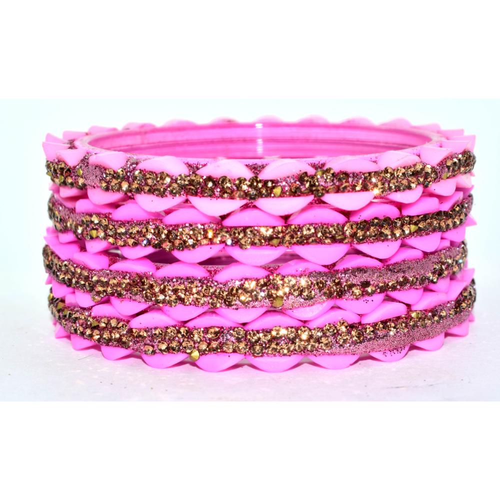 Jaipuri Designer Fancy Glass Peach Bangles set Pack of 4