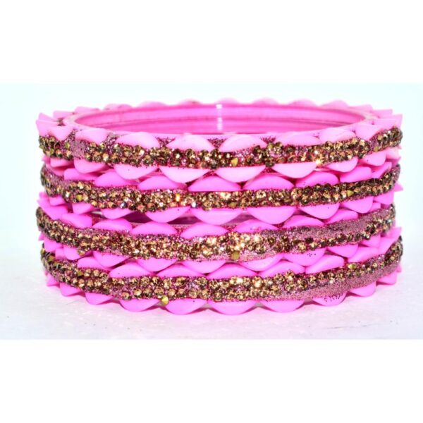 Jaipuri Designer Fancy Glass Peach Bangles set Pack of 4