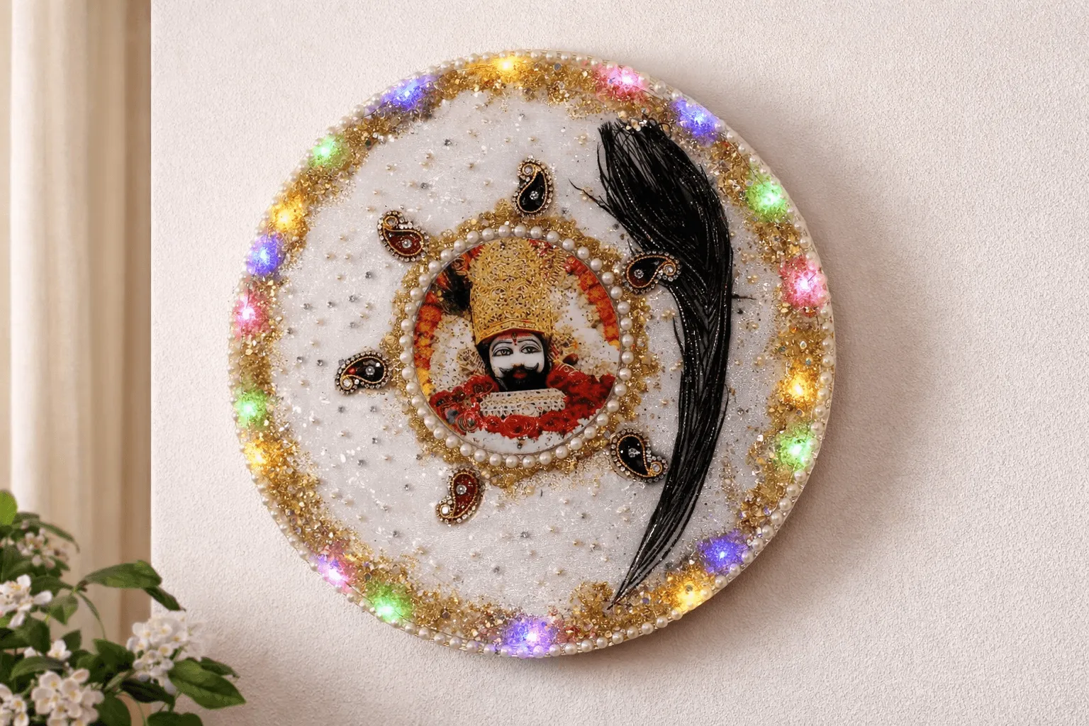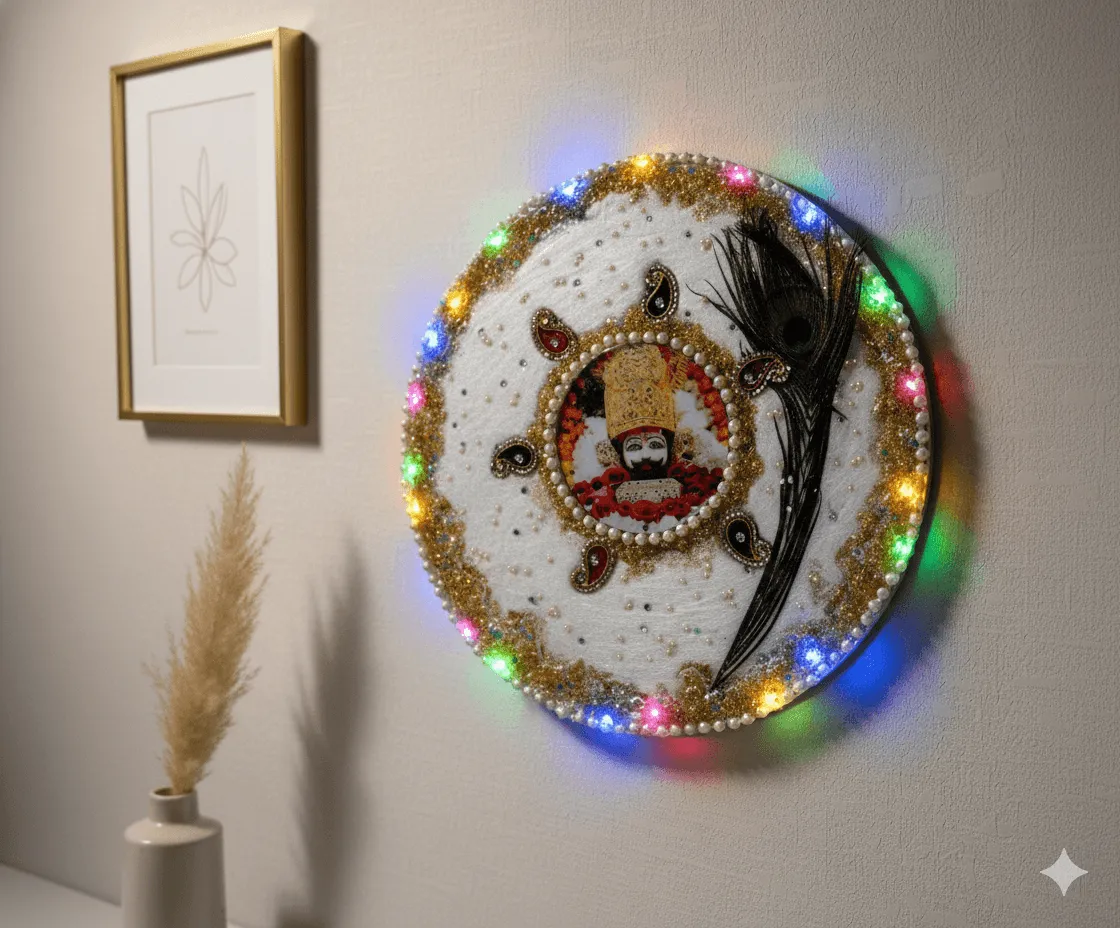 Khatu Shyam Resin Wall Decor with LED Lights – Spiritual Home Decor