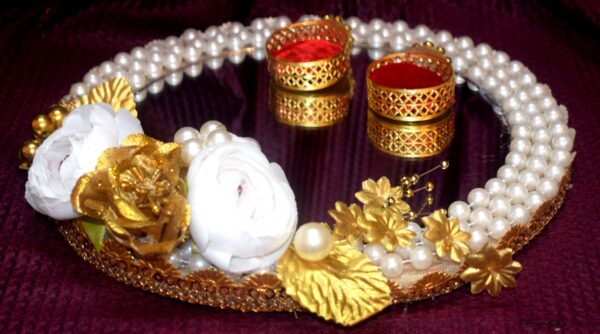 Our Engagement Ring Tray – Ring holder platter is not just an accessory; it’s a memory made tangible. It’s the perfect mix of beauty and utility, designed to make your special day unforgettable. At Mokshika.in, we prioritize your happiness, ensuring every product exceeds expectations.