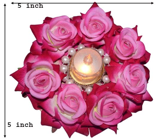 “Handmade decorative diya plate with 6 tealight holders. Perfect for Diwali, pooja, weddings & gifting. Vibrant design with pom-poms & floral accents.”