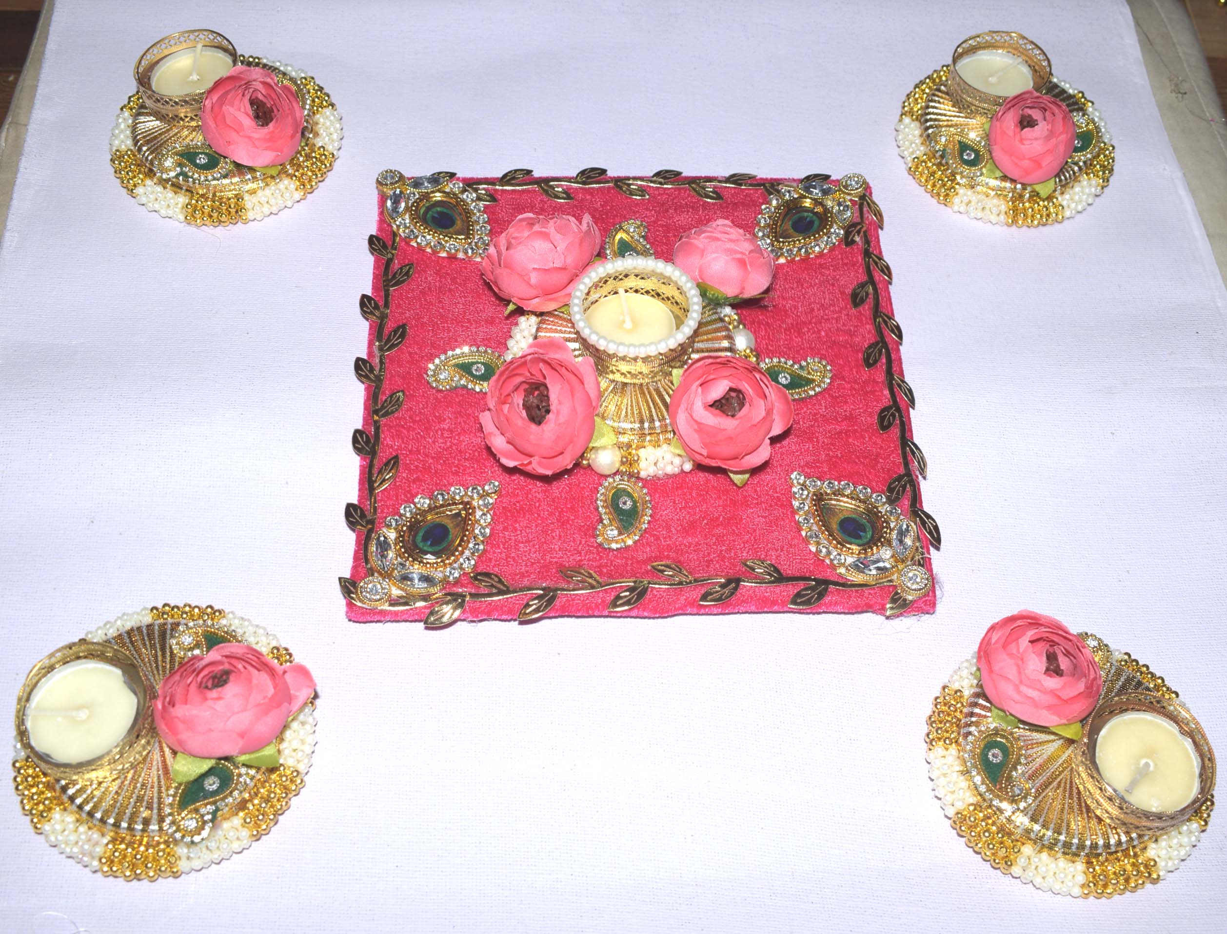 Set Contents: 1 Chowki Plate + 4 Tealight Holders (Total 5 pcs)
