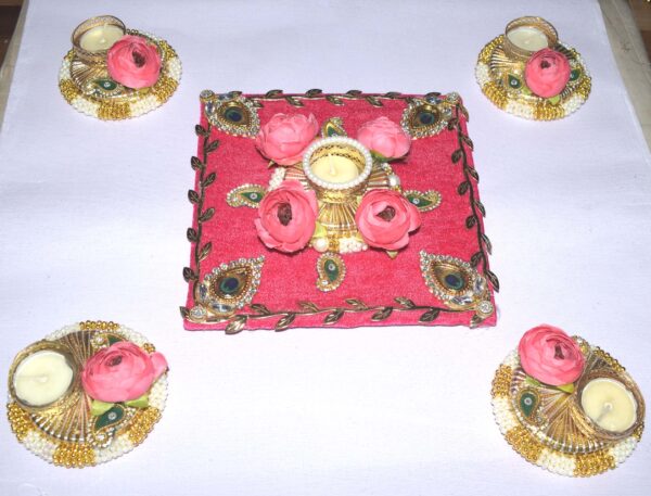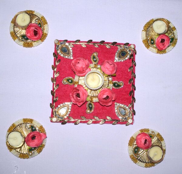 Set Contents: 1 Chowki Plate + 4 Tealight Holders (Total 5 pcs)