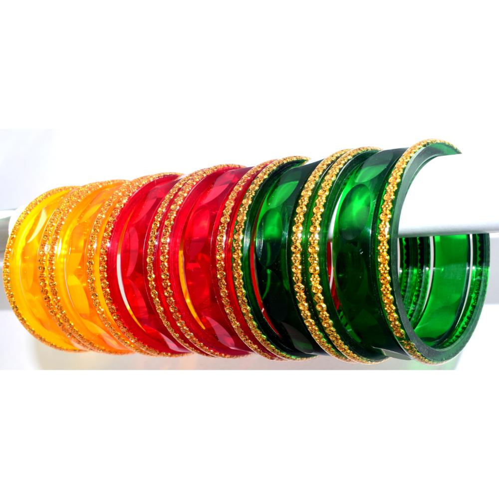 Red Green Yellow Kada set Brass Work Seep Laminate
